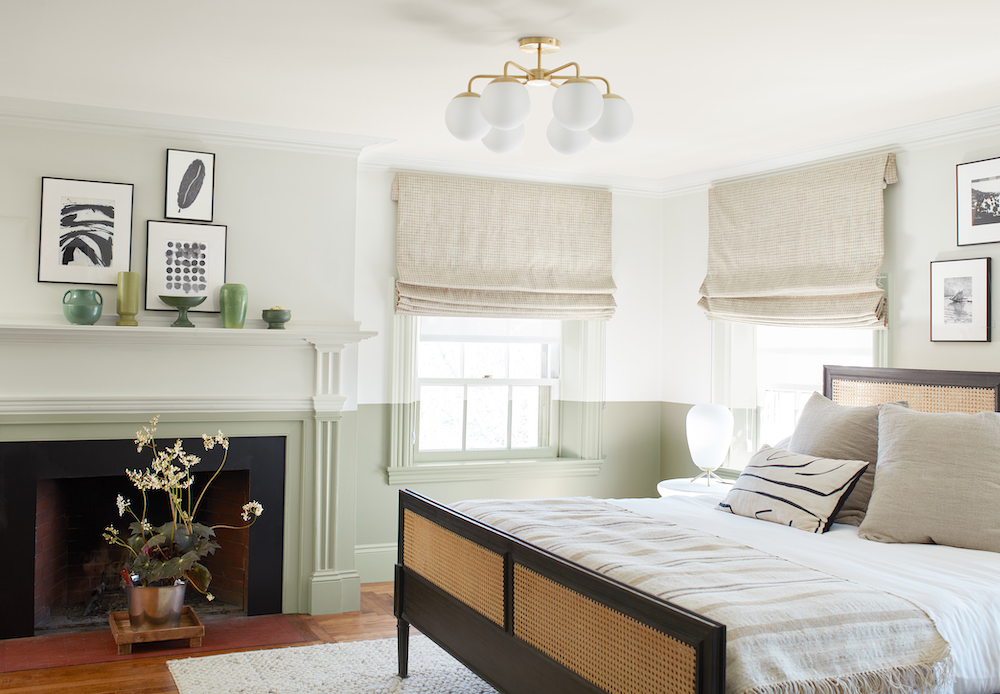 Previous Image Next Image October Mist SplitWallBedroom Benjamin Moore Benjamin Moore October Mist and Morning Dew in a bedroom